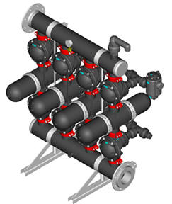 适合低压过滤系统的叠片过滤器,最小工作压力可低至0.8bar,依靠外界有压水源或气源对过滤系统进行反洗,或辅助反冲洗,以保证过滤单元能够冲洗干净,而又不间断工作。